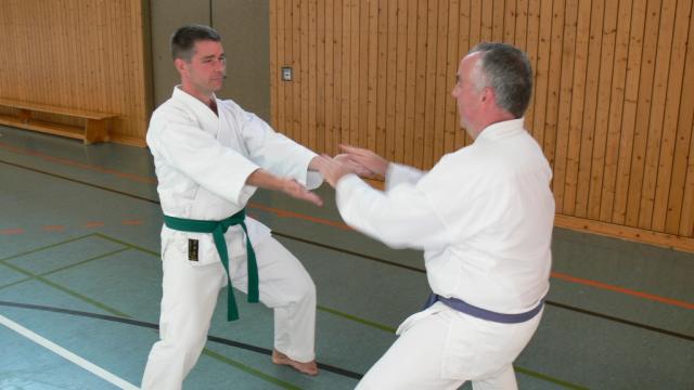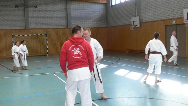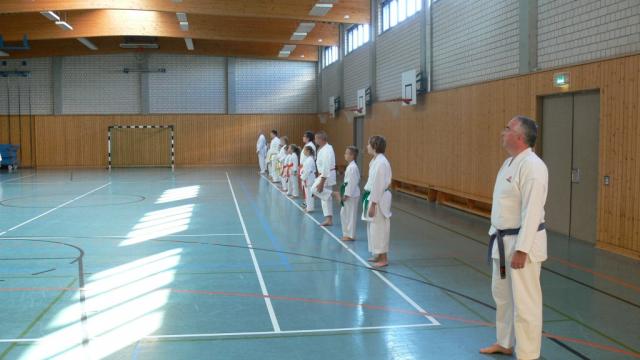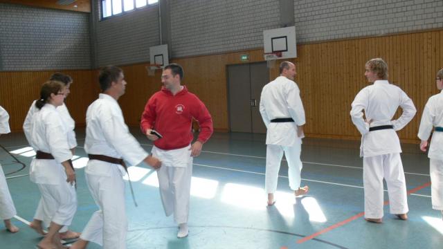 Beide Kata wurden von der „Pike“ auf gezeigt. Am Anfang stand die Grundschule, welche sich aus Sequenzen der Kata zusammensetzte. Teilweise zeigte uns Alexander bei schwierigen Passagen vereinfachte Vorübungen, um dann wieder zur Kata zurückzukehren. Alexander zerlegte die Kata in gut erlernbare Teile, welche in der letzen Stunde am Stück gelaufen wurden. Für Fragen zu Kata-Details, Anwendungen oder auch zu sportlichen Themen war ebenfalls Raum und Zeit.